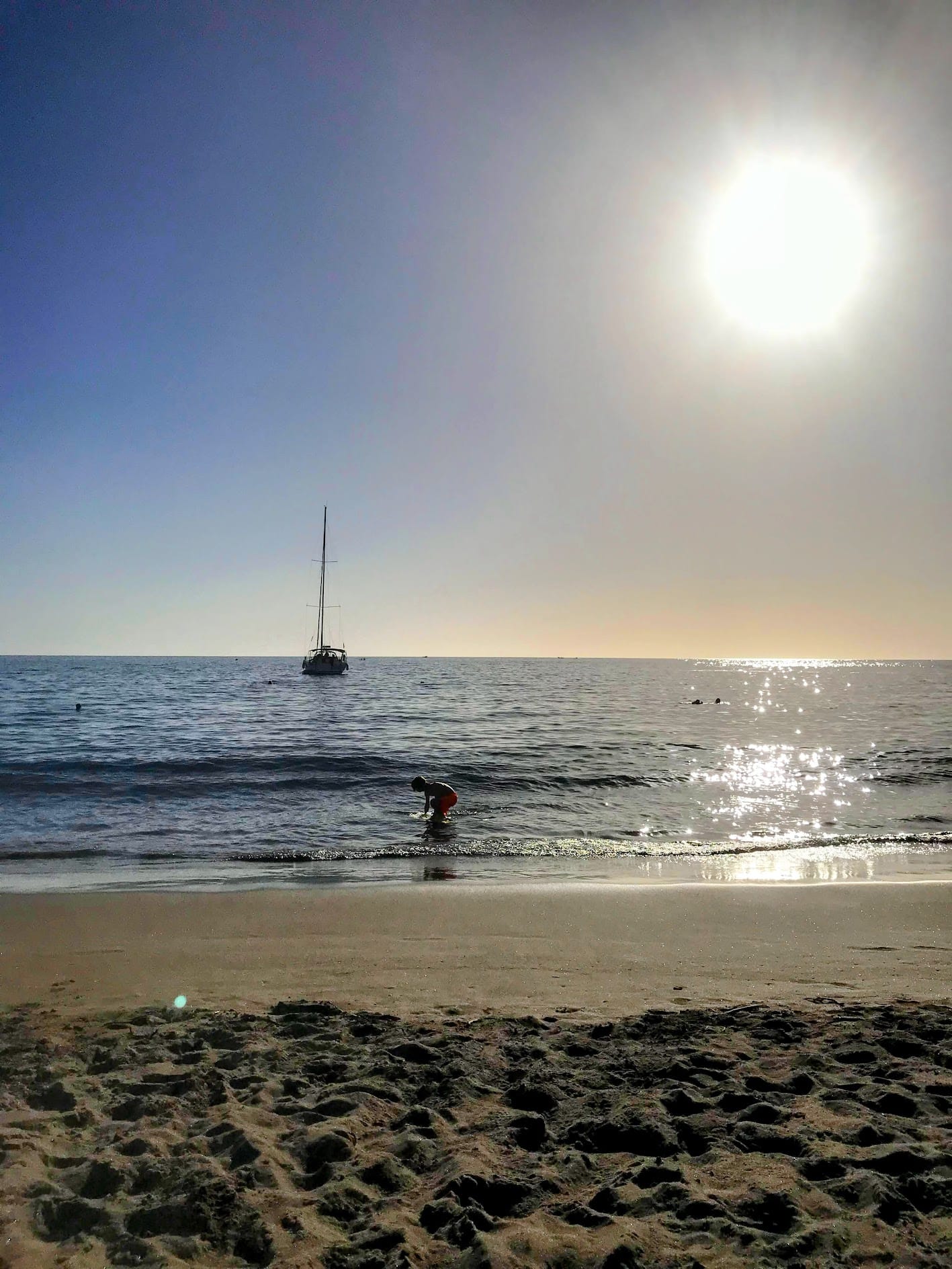 The calm water makes it especially popular with families and visitors looking for a relaxing beach day.